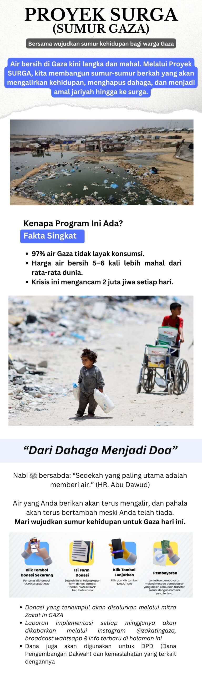 Tim Zakat In Gaza masih terus membuka kesempatan bagi Sahabat Gaza sekalian yang ingin menitipkan kebaikannya untuk mendukung bantuan air bersih bagi saudara-saudara kita yang terdampak di Gaza Palestina.