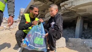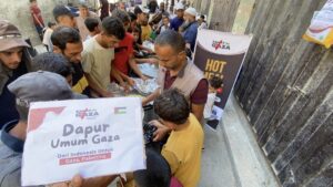 GIZI UNTUK GAZA Di balik deretan bangunan yang hancur, tenda-tenda darurat berdiri sebagai saksi bisu ketabahan rakyat Gaza. Anak-anak berlari kecil dengan wadah kosong di tangan mereka, bukan untuk bermain, tapi untuk mengantre makanan hangat sesuatu yang bagi kita mungkin biasa, namun bagi mereka adalah